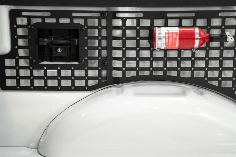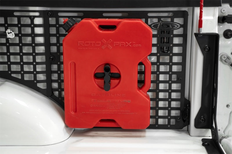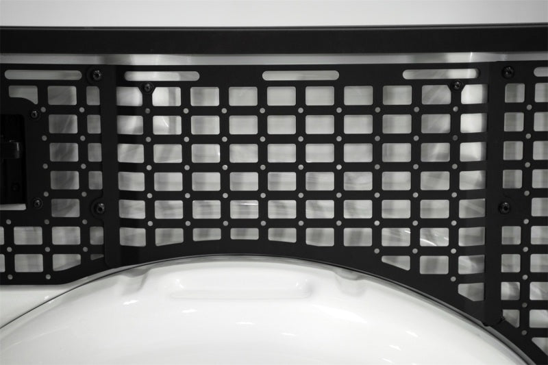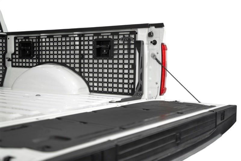 Our Bed Side Molle Panels optimize the cargo storage capabilities of your truck bed. Engineered for off-road durability and keeping your gear secure, these storage panels are compatible with various attachment systems. You can secure your gear to these panels with molle mounts, straps, bolts, or tie-down straps. Choose from several configurations for the driver side, passenger side, or both sides to maximize your vertical storage - and leave the bed floor clear for larger cargo. Our panels are unrivaled in their fitment, as the very closely follow the contours of the truck bed. Constructed from American steel and finished in a durable 2-stage hammer black powder coat, these molle panels add secure storage for essentials like shovels, hi-lift jacks, fluid tanks, recovery gear, and more. The panels mount to the bed at several points, ensuring rigidity on rough terrain. Even so, they are easily removable when needed. As always, these are fully bolt-on and Made in America. This modular system allows for you to run 4 configurations on driver side, passenger side, or both: Front Bed Panel Only / Rear Bed Panel Only / Front & Rear Bed Panels Only / Front, Center, & Rear Bed Panels for Full Bed Length Coverage * Please Note: The front panels can be installed to either the driver or passenger sides. All other panels are unique to each side of the truck, and will only install to its dedicated side. ** Please Note: Center panel cannot be installed on its own. It requires BOTH the front and rear panels for installation. ** Fitment Note: These are compatible with the 5.5' Short Bed Only.This Part Fits:
