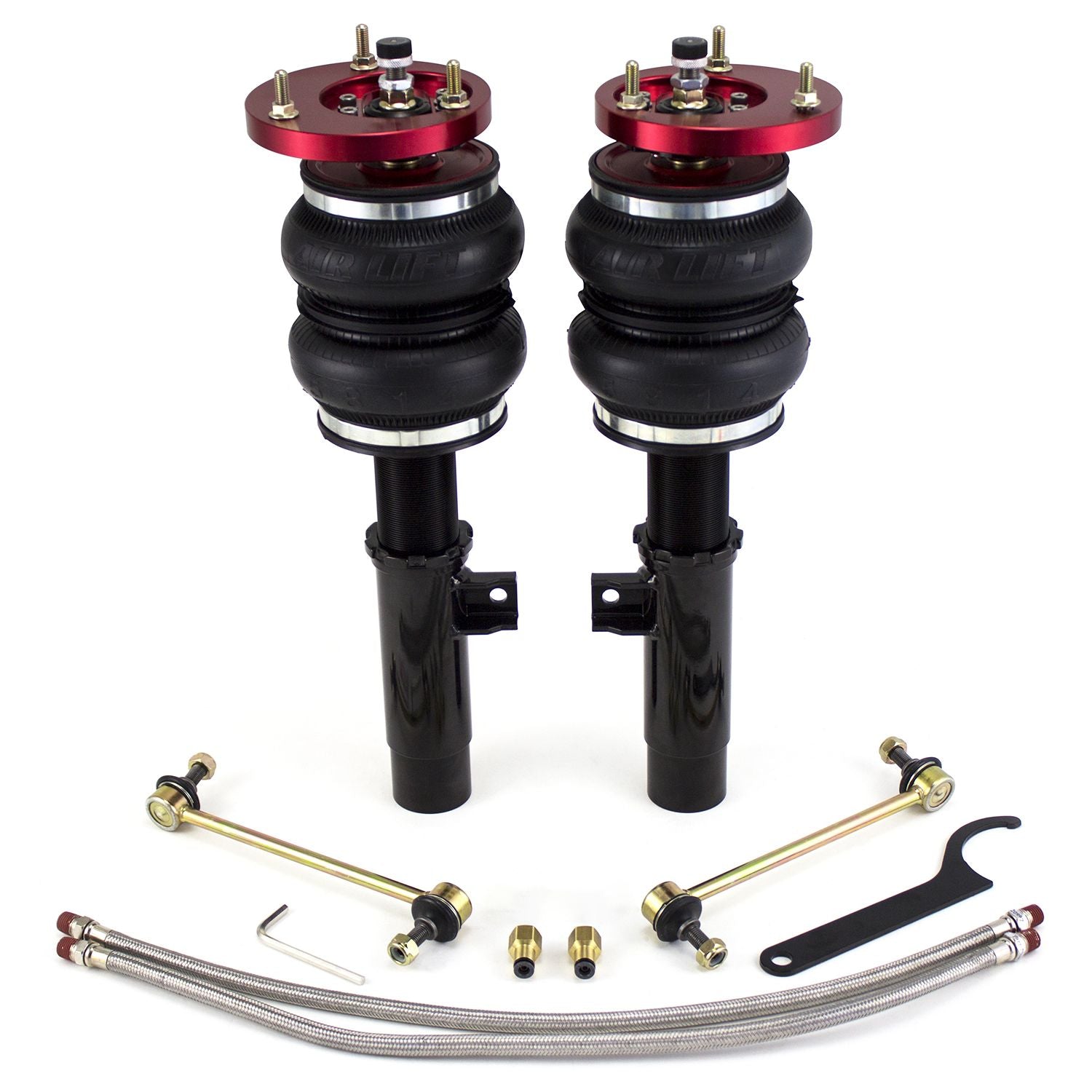 Get the stance you want and the performance you need with Air Lift Performance air suspension kits! Every kit we offer is fully engineered to properly fit your vehicle, provide unmatched static drop, and deliver ride and handling capability that exceeds factory coilover suspensions. No other lowering suspension provides a more versatile package for daily use. Elevate your BMW's reputation by lowering it...with 5 inches of drop and all the versatility of air suspension. The Air Lift Performance kit is the best choice for show stance AND daily driving. Get the sharp look you crave with the exceptional performance you need! Get the ultimate performance from your car with a compact, double-bellows air spring over 30-level damping adjustable, monotube, threaded body strut with independent ride height adjustment. You'll get adjustable camber plates made of red, anodized aluminum that utilizes a high-quality spherical bearing, which is sure to smooth out your ride. Look your best with the black chromed steel-strut bodies, black powder-coated lower mounts, and bright red anodized aluminum end caps. This kit includes M3 style swaybar end links and stainless steel braided air lines with 1/4in PTC fittings. Earn some well-deserved attention for your BMW and grab up an Air Lift Performance kit today!- 30 clicks of damping adjustment with a huge range from super soft to race car stiff