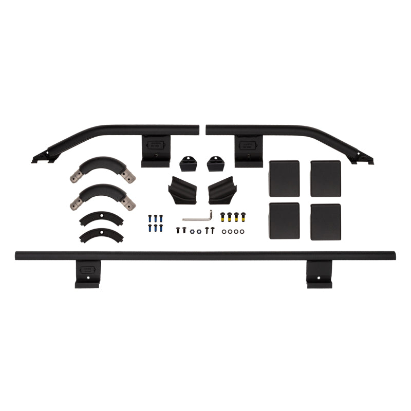 The BASE Rack takes accessories and cargo loading to a whole new level of simplicity, speed and personalisation. With a choice of sizes, accessories and attachments, you can truly Make It Your Own. By incorporating a dovetail extrusion around both the full perimeter and along each edge of the internal beams, the BASE Rack provides endless mounting and attachment options. Adding, removing and repositioning accessories and roof loads is quick and easy with the BASE Rack's dovetail system, making it easier to install and remove individual items without disturbing the whole load. Plus, unlike traditional roof rack channels, the BASE Rack dovetail extrusion won't collect dust and debris. Each BASE Rack accessory or fixture attaches to the rack with a simple clamp mount, including larger hardware such as Hi-Lift(TM) Jack mounts, rollers, recovery boards and even a BASE Rack custom light bar.