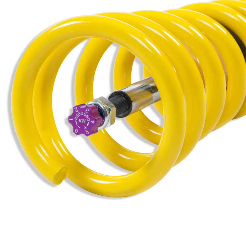 Cutting-edge motorsports technology for more performance on the road. Like every suspension product developed by KW automotive, the suspension manufacturer, and manufactured in Germany, the KW V3 Coilover suspension kit also provides a significant plus in safety reserves in road traffic. Thanks to the chassis with its high-quality dampers, springs, and elastomer spring elements, pitching and rolling movements during load changes such as evasive maneuvers, cornering, acceleration, and braking are significantly reduced. The braking distances are also shortened. Thanks to improved support and feedback, drivers not only feel safer but driving in everyday life becomes even safer. With compression and rebound stage damping, that can be set separately and independently of each other, the damper setup can be customized to your personal driving preferences or vehicle changes such as weight, tire characteristics, or altered vehicle rigidity. True perfo rmance optimization is only possible with this unique, patented system. For example, this allows the compression damping force to be increased and get more grip from the tires, to improve cornering behavior and reduce squat without simultaneously altering the rebound stage damping which is optimally matched to the spring rate, a scenario which results in reduced grip and the associated loss of performance. The KW V3 coilover kit is the ideal tool for performance-oriented drivers and experienced tuning enthusiasts who place a strong emphasis on the overall performance of their suspension. The Variant 3 features patented TVR-A and TVC-A technology that provides separately adjustable rebound and compression damping. The extensive adjustment range of the independently configurable rebound and compression make it easy to directly influence the steering behavior, directional stability, grip and handling characteristics for confident and repeatable results at the limit of driving dynamics.This Part Fits: