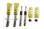 Cutting-edge motorsports technology for more performance on the road. Like every suspension product developed by KW automotive, the suspension manufacturer, and manufactured in Germany, the KW V3 Coilover suspension kit also provides a significant plus in safety reserves in road traffic. Thanks to the chassis with its high-quality dampers, springs, and elastomer spring elements, pitching and rolling movements during load changes such as evasive maneuvers, cornering, acceleration, and braking are significantly reduced. The braking distances are also shortened. Thanks to improved support and feedback, drivers not only feel safer but driving in everyday life becomes even safer. With compression and rebound stage damping, that can be set separately and independently of each other, the damper setup can be customized to your personal driving preferences or vehicle changes such as weight, tire characteristics, or altered vehicle rigidity. True performance optimization is only possible with this unique, patented system. For example, this allows the compression damping force to be increased and get more grip from the tires, to improve cornering behavior and reduce squat without simultaneously altering the rebound stage damping which is optimally matched to the spring rate, a scenario which results in reduced grip and the associated loss of performance. The KW V3 coilover kit is the ideal tool for performance-oriented drivers and experienced tuning enthusiasts who place a strong emphasis on the overall performance of their suspension. The Variant 3 features patented TVR-A and TVC-A technology that provides separately adjustable rebound and compression damping. The extensive adjustment range of the independently configurable rebound and compression make it easy to directly influence the steering behavior, directional stability, grip and handling characteristics for confident and repeatable results at the limit of driving dynamics.This Part Fits: