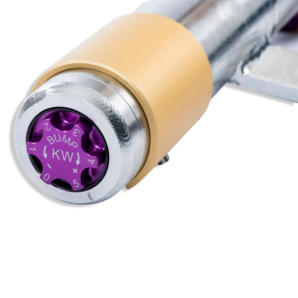 Cutting-edge motorsports technology for more performance on the road. Like every suspension product developed by KW automotive, the suspension manufacturer, and manufactured in Germany, the KW V3 Coilover suspension kit also provides a significant plus in safety reserves in road traffic. Thanks to the chassis with its high-quality dampers, springs, and elastomer spring elements, pitching and rolling movements during load changes such as evasive maneuvers, cornering, acceleration, and braking are significantly reduced. The braking distances are also shortened. Thanks to improved support and feedback, drivers not only feel safer but drivin g in everyday life becomes even safer. With compression and rebound stage damping, that can be set separately and independently of each other, the damper setup can be customized to your personal driving preferences or vehicle changes such as weight, tire characteristics, or altered vehicle rigidity. True performance optimization is only possible with this unique, patented system. For example, this allows the compression damping force to be increased and get more grip from the tires, to improve cornering behavior and reduce squat without simultaneously altering the rebound stage damping which is optimally matched to the spring rate, a scenario which results in reduced grip and the associated loss of performance. The KW V3 coilover kit is the ideal tool for performance-oriented drivers and experienced tuning enthusiasts who place a strong emphasis on the overall performance of their suspension. The Variant 3 features patented TVR-A and TVC-A technology that provides separately adjustable rebound and compression damping. The extensive adjustment range of the independently configurable rebound and compression make it easy to directly influence the steering behavior, directional stability, grip and handling characteristics for confident and repeatable results at the limit of driving dynamics.This Part Fits: