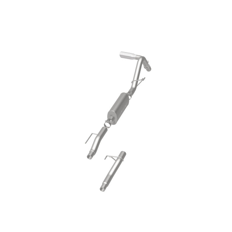 The MagnaFlow Street Series Cat-Back Performance Exhaust System 16518 brings out the personality of your Truck with our signature resonant, powerful engine tone and dyno-proven performance. Thanks to its fast-flowing, mandrel bent 3in. main piping and 1 Straight-Through mufflers ending in a Single Passenger Side Rear exit with 4in. Polished Welded-On Double Wall Angle Cut Rolled Edge tips, this Truck exhaust kit has the performance chops to match its sporty sound and appearance. Upgrade your ride to the next level with an exhaust that has the pipes to put other Truck's to shame. With this system your vehicle will be producing Moderate exterior and Mild interior sound levels while leaving other cars and trucks feeling envious at every stoplight. Exhaust kit 16518 features a cat-back layout that replaces your ride's stock exhaust components from near the catalytic converter on back. Extensive 3D scanning during development has resulted in a direct-fit design that you can easily install yourself. 16518 is produced using CNC precision robotic manufacturing techniques and is backed by MagnaFlow's 1-year limited finish warranty and limited lifetime construction warranty.This Part Fits: