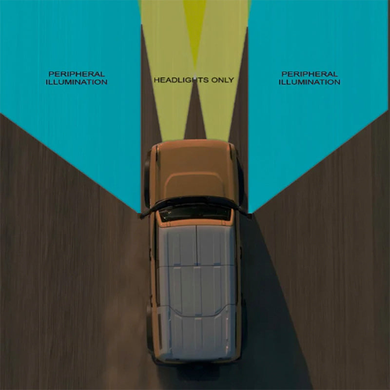 This innovative new product from ORACLE Lighting features a set of high powered LED light bars integrated into factory-style side mirrors of the new Ford Bronco! This integration allows for easy installation and a sophisticated, almost appearance while providing functional peripheral illumination for the driver. The LEDs are custom design that features a total of 24 LEDs producing approximately 2250 Lm. Each unit has a 45? beam angle to optimize the driver's peripheral visibility. Why is peripheral illumination important? Factory headlights and most auxiliary lights only illuminate the area in front of the vehicle. Ideally for off-road activities, such as trail riding, the driver needs to be able to clearly see the area on the sides of the trail to spot obstructions, which would otherwise go unnoticed and could be a potential hazard. The Bronco trim levels have different features implemented into the side mirrors from the factory such as cameras, puddle lights, and indicators. To make these mirrors compatible with all trim levels blank plates were designed to replace these features on the ORACLE mirrors. If your Bronco is equipped with these features simple remove the blank and swap over the component. If you do not have these features just leave the blanks in place for a seamless appearance. The housing material is made from rugged Polycarbonate which is 2x stronger than the factory ABS housing- and bolts onto the vehicle using the factory mounts for easy installation. A set of anodized rock guards protects the LED acrylic lenses, which also houses the DBM Reflex LED optics. These efficient optics focus the light for optimal visibility from the driver seat position.This Part Fits:
